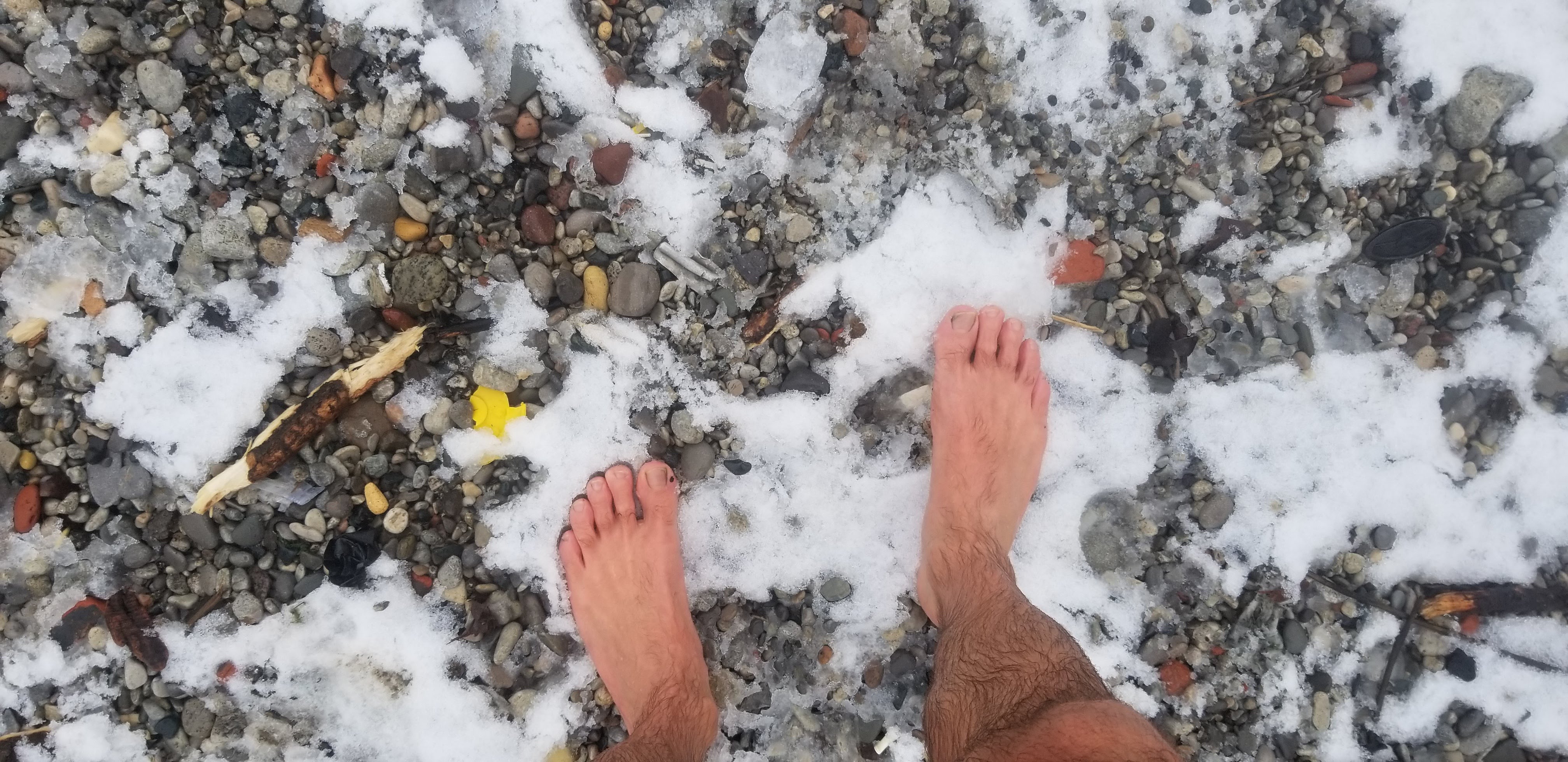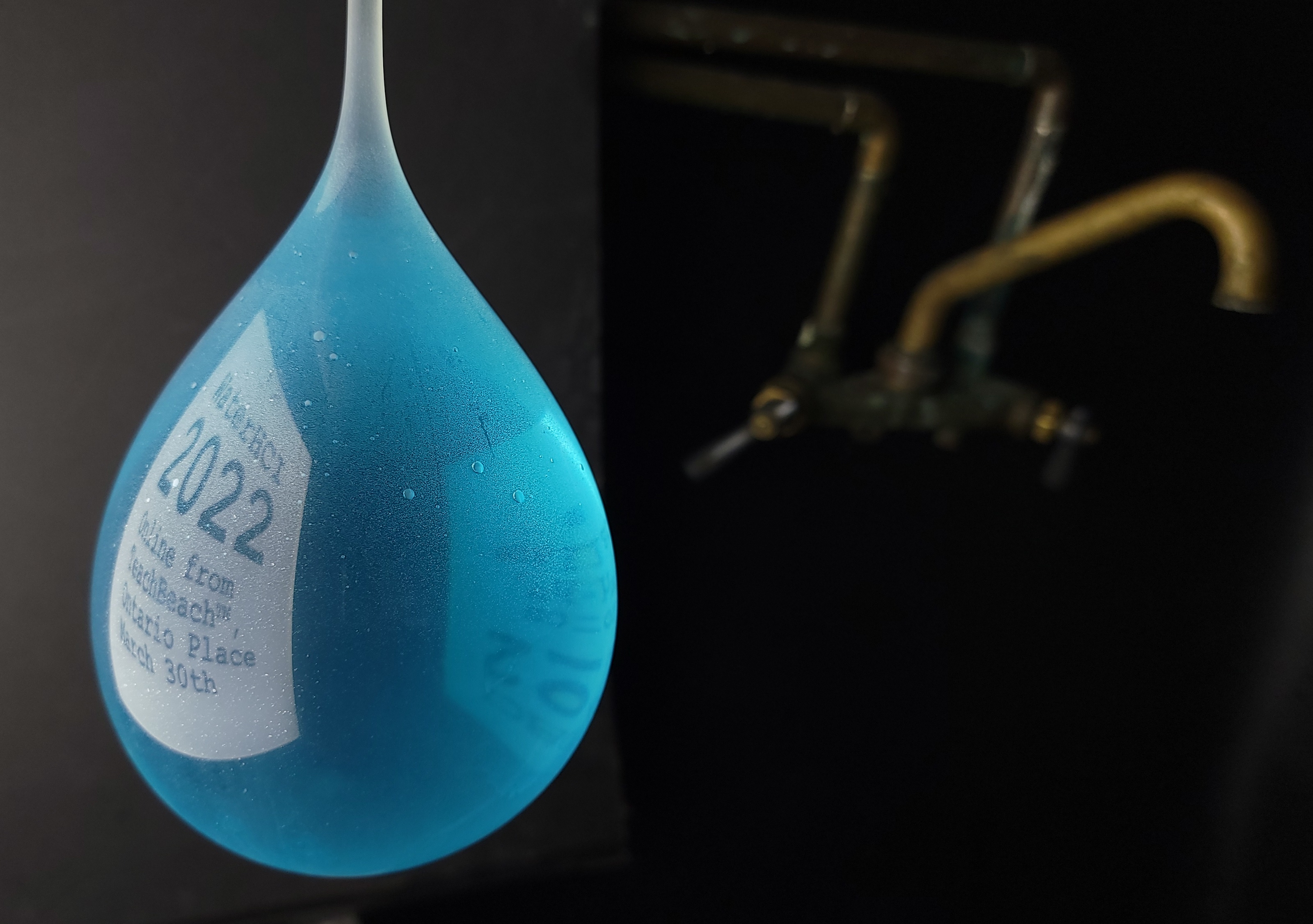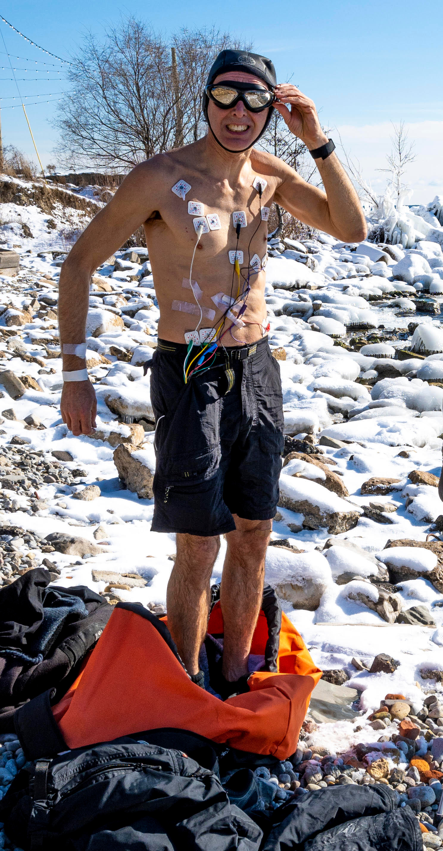 Two staff members from Swim Drink Fish doing water sampling and testing out the SmartSwim augmented reality eyeglasses: